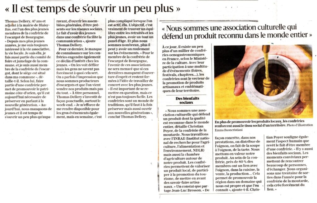 Confrérie de la moutarde de Dijon – 47 rue Hoche 21000 DIJON – Tél : 06 80 08 35 35 – Mail : confreriedelamoutardededijon@orange.fr